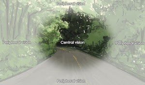 The cool thing about peripheral vision is that, together, our eyes and brain assemble rough images brought in through our eyes to create the peripheral world around us.