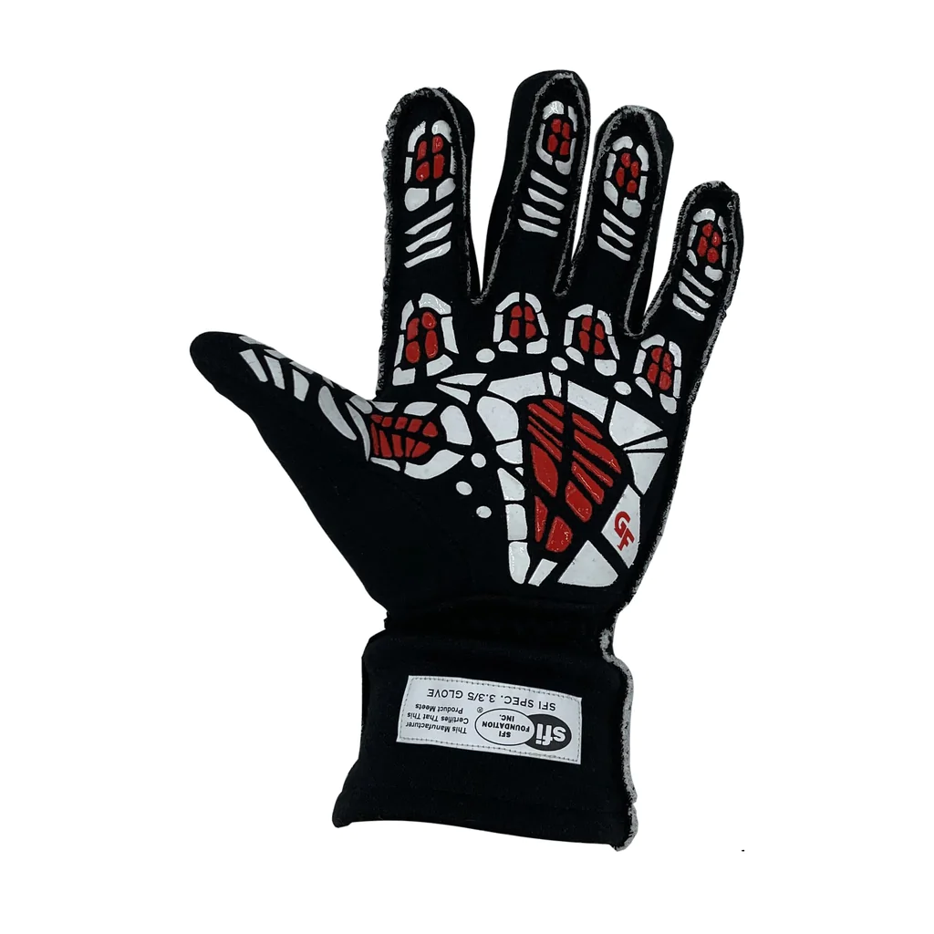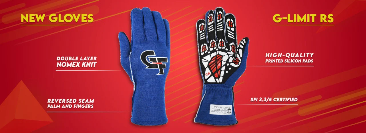 The G-Limit RS gloves brings the Gforce glove game to a whole new level. The double layer Nomex knit will allow for moisture to escape. The high-quality printed silicon pads and reversed seam palm and fingers come together to give grip, comfort and protection unlike anything we have made before. Available in Black, Blue or Red, in both child and adults’ sizes. SFI 3.3/5 certified.